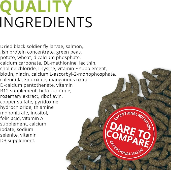 - Bottom feeder fish food that contains up to 40%, nutrient-rich Black Soldier Fly Larvae, the first ingredient