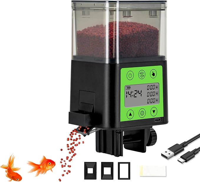 - 【320ML Large Capacity Automatic Feeder】 Upgraded heightened food tank, can automatically and continuously provide your fish with fresh food for 3 ~ 6 months, you don't need to worry about your pet's feeding anymore. Transparent food tank facilitates us to monitor food consumption and add food in time