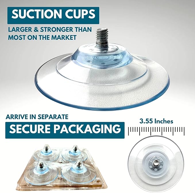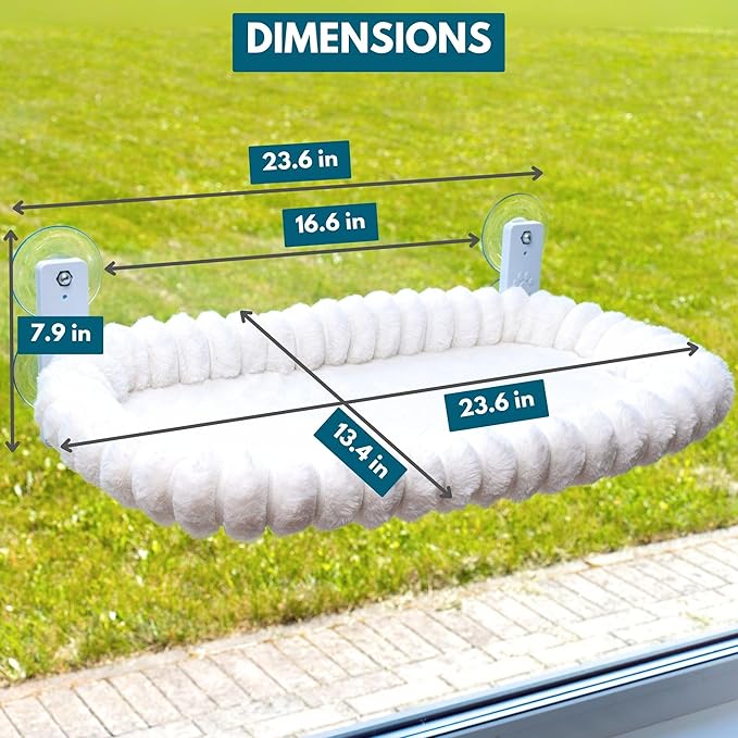 - FOUR STRONG & LARGE PREMIUM SUCTION CUPS — Designed with four large, heavy-duty suction cups that ensure a secure attachment to windows; For added convenience, the suction cups come in separate secure packaging to maintain their quality; Your cat can lounge safely and confidently in this window cat perch; Suction cup size 3.55 inches
