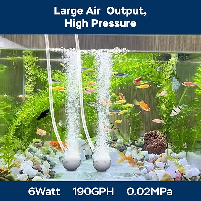 - QUIET OPERATION - Featuring a double-layer housing, rubber feet that reduce vibration, and magnetic suspension technology, this fish tank air pump operates nearly silently. It fosters a serene environment while effectively supplying oxygen to your fish.