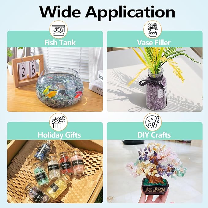 - Safe & Long Lasting: Each crushed crystal is a naturally formed stone, without the use of dyes or other artificial coloring methods, it will never fade and can be used for long-lasting decoration