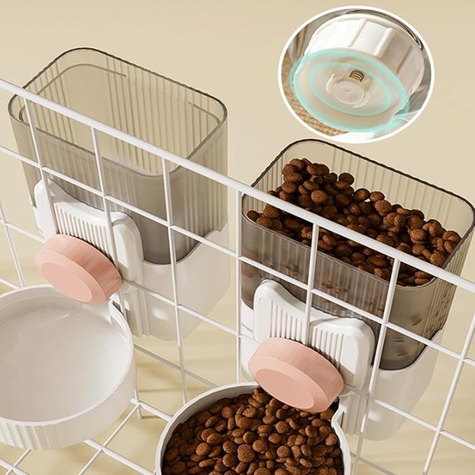 - 【Automatic Food Water Dispenser 】: Our food water dispenser set will save time instead of having to put food in non-stop, they are very convenient that you don’t have to refill the cat food and water daily. They use the gravity system like the top loading water dispenser consistently providing fresh water and food, helping keep the water somewhat cleaner. The feeder has a large food outlet and 45° ramp, so food can be smoothly filled. No electricity is needed.