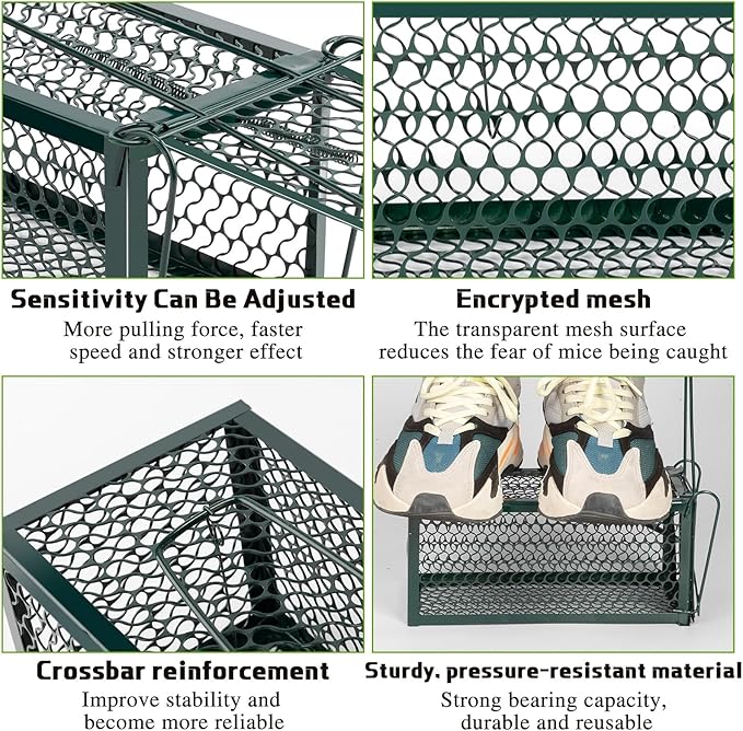 - Weather and Rust Resistance: the squirrel trap is made of wire mesh, rust and corrosion resistant, strong and will not break easily, can prevent animals from chewing, safe and humane, you can use for a long time