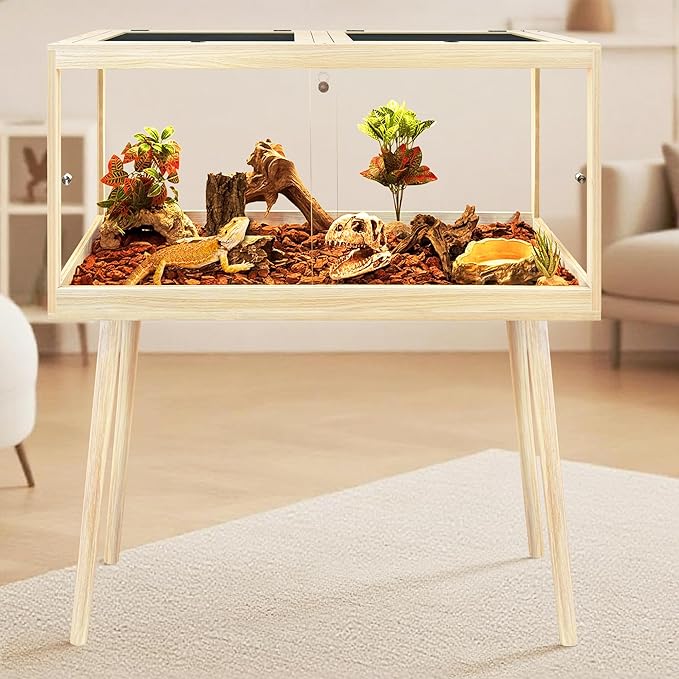 - 【Premium Wooden Reptile Habitat】Give your reptiles a safe and dependable home. Crafted from solid wood core with double sided water-repellent coating, this enclosure is built to last while maintaining a dry and stable environment. Specially designed for terrestrial reptiles (not for aquatic species), it provides a reliable space where your pet can thrive every day.