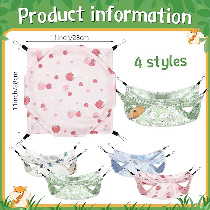 - Rich in Styles: there are 4 styles of ferret cage accessories, namely grass rabbit, blue lemon, pink strawberry and white car; Bright hammocks can be applied as pet cage decorations, enough to use and replace