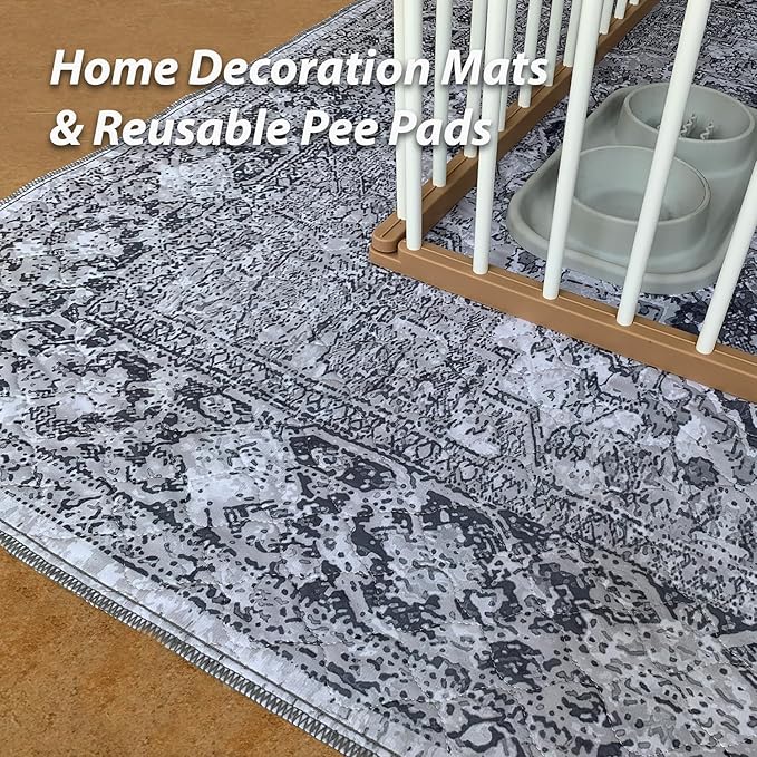 nunubaby Washable Pee Pads for Dogs, Stylish, Non-Slip and Leak-Proof Pee Pads. Reusable Potty Pads for Dogs for Crates and Floors.(Gray/Geo, 31" x36")