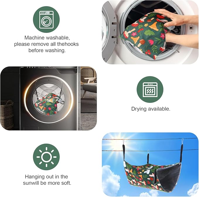 - Machine Washable & Pet Safe: Designed for convenience, this guinea pig hammock is completely machine washable (remove hooks before washing). The high-quality materials maintain shape after multiple washes. The hamster hammock features rounded corners and secure stitching to prevent any potential harm to your beloved pets.