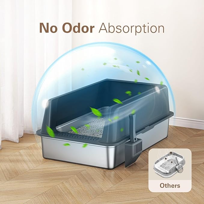 - 【Easy Cleaning and Odor Control】: Unlike a plastic litter box, this stainless steel litter box features a smooth, nonstick surface that rinses clean in seconds. Waste doesn’t cling, stains don’t absorb, and odors don’t linger—ensuring a fresher, healthier space for your cat