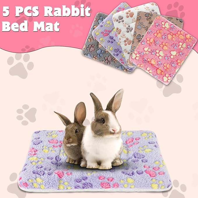 YUEPET 5 Pack Warm Guinea Pig Bed Pads Soft Guinea Pig Sleeping Mats Washable Small Animal Bedding Cage Liners for Indoor Bunny Hamster Squirrel Hedgehog Chinchilla Ferret Paw Pattern(20.5''*13.4'')