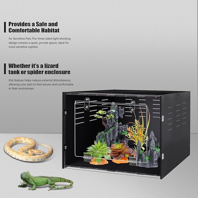 - Secure and Convenient Access Features a front-opening panel for easy feeding and cleaning. Lockable design prevents escapes, giving peace of mind for snake and gecko owners