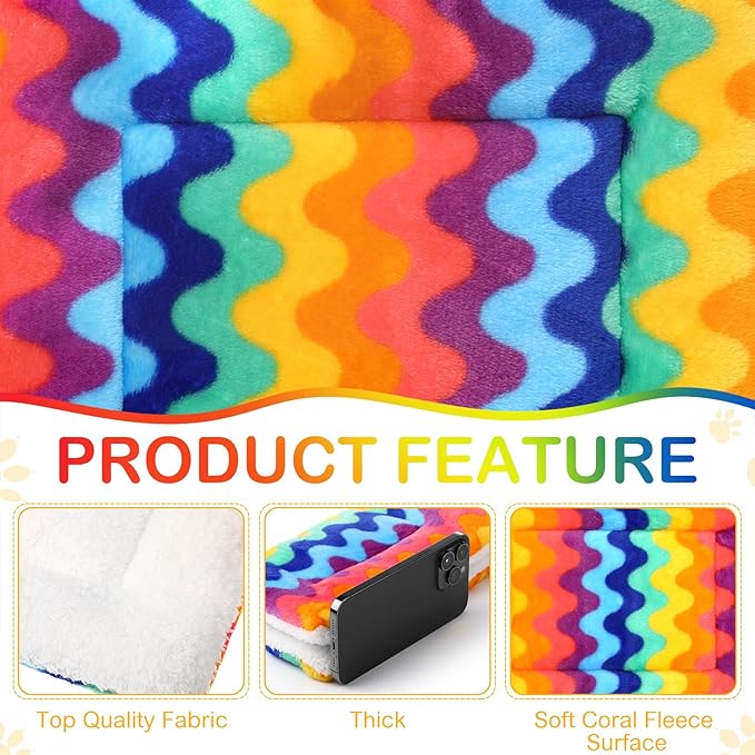Haull 4 Pcs Waterproof Guinea Pig Bedding Winter Guinea Pig Bed Plush Cage Liners Soft Dog Cat Mat Reversible Winter Cozy Animal Pee Pad Hamster Bed Mat for Bunny (Rainbow,13 x 10 Inch)