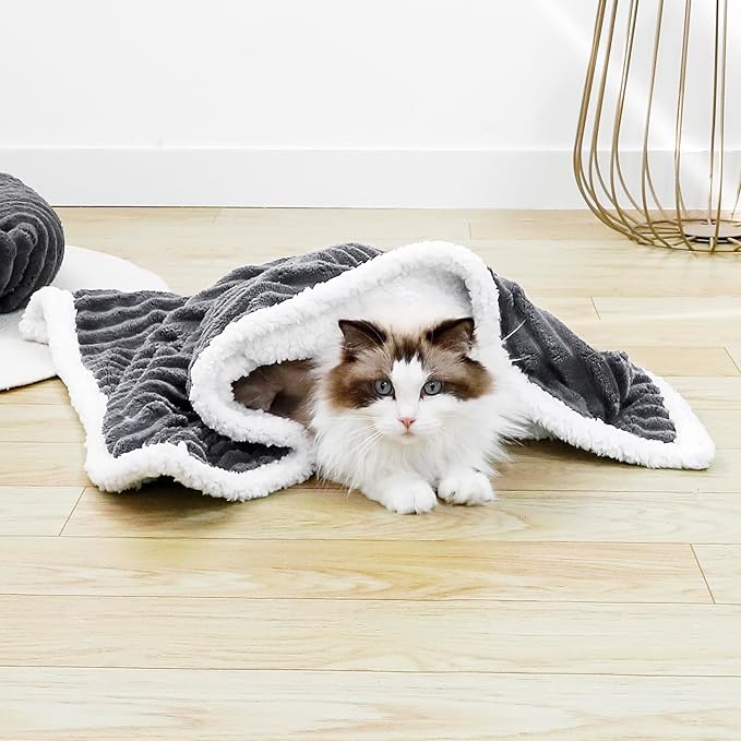 Waterproof Pet Blanket Soft Calming Dog Blanket Cozy Sherpa Fleece Blanket Reversible Furniture Protector Cover for Small Medium Large Dogs Cats Machine Washable, Dark Grey 35x25 in