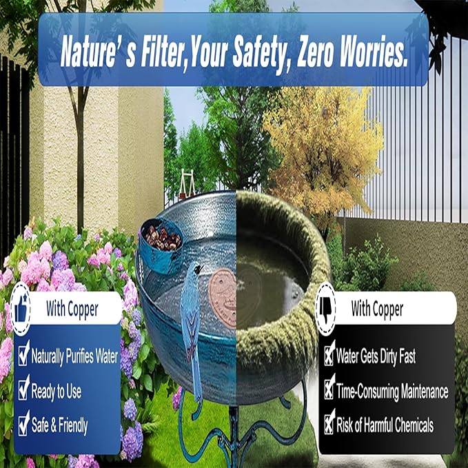 - High-Purity Copper Material:Made of 99.9% pure copper (0.6mm thick), these discs naturally help maintain cleaner water in bird baths by inhibiting algae buildup.