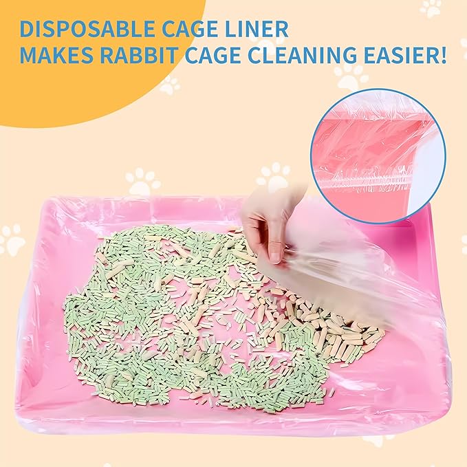 - Disposable Bunny Cage Liner Set: Includes 100 durable film bags, providing ample supply for daily use and replacement. This helps minimize frequent cleaning and upkeep while maintaining a sanitary tray environment.