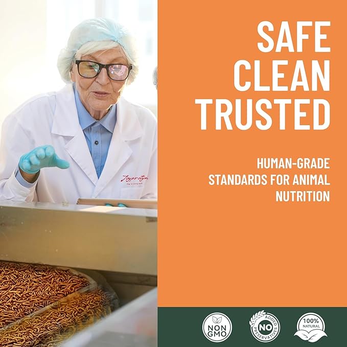 - High-Calcium Chicken Grubs: Joyprotyn’s BSFL (Black Soldier Fly Larvae) feed offers 85x the calcium of traditional dried mealworms, enhancing eggshell strength and promoting bone health in your hens for sturdy eggs. This high-calcium feed is perfect for robust egg production and overall poultry well-being.