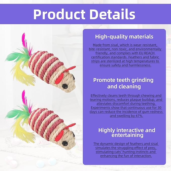 - Protect Your Furniture: Say goodbye to scratched furniture, These offer a satisfying texture for your cat to scratch,and play with, redirecting their natural urge to scratch away from your valuable belongings and onto these fun and engaging toys