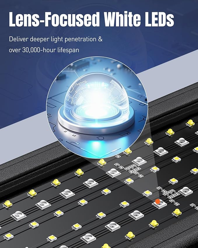 - 24/7 Natural Day-Night Cycle: Automatically turn on at 6 a.m. and off at 10 p.m., simulating the natural day-night cycle from sunrise to night to enhance your aquarium’s natural environment—keeping your aquatic life active and thriving
