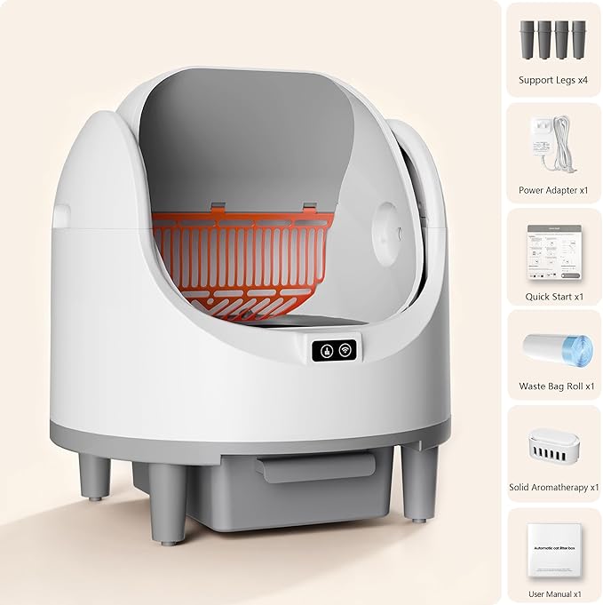 - 【Smart App Monitoring & Control】Control and monitor your litter box from your phone! Schedule cleanings, empty waste with one tap, track your cat’s litter habits, and get friendly reminders when it’s time to refresh—all through a simple app. (2.4GHz WiFi required)