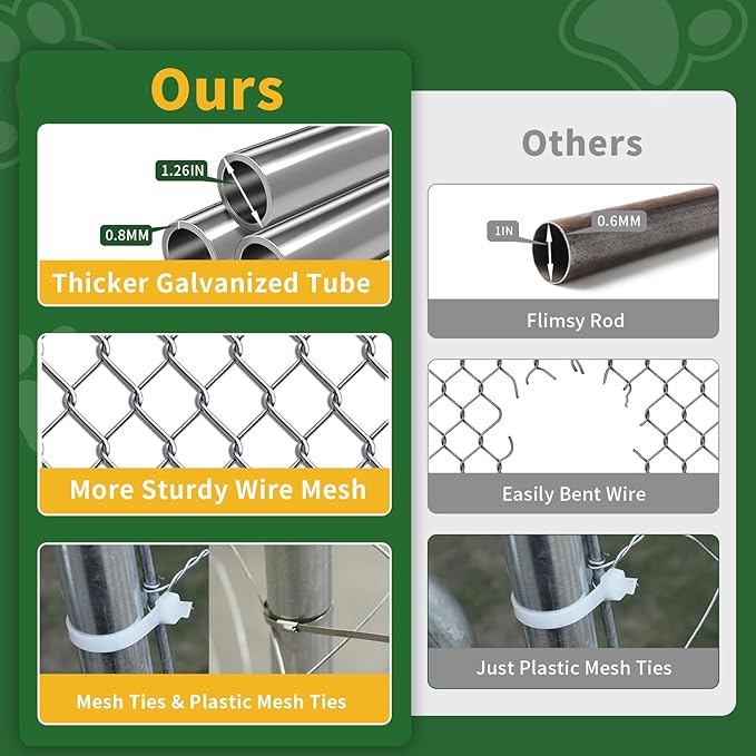 - Included Components : Chain Link Fence Panels, Dog Kennel Frame, Ground Stakes, Metal Ties, Uv-resistant Canopy Cover