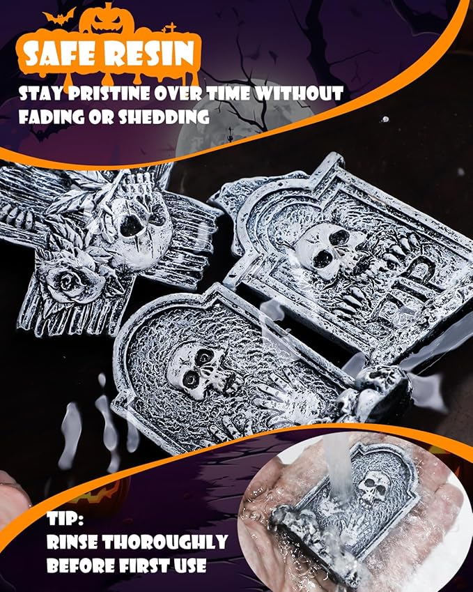 - Versatile Use: Unleash your creativity to the fullest with these lifelike graveyard gravestones – create miniature scenes, enhance party tables, or add gothic flair to any crafting project. Watch these mini masterpieces steal the show this October